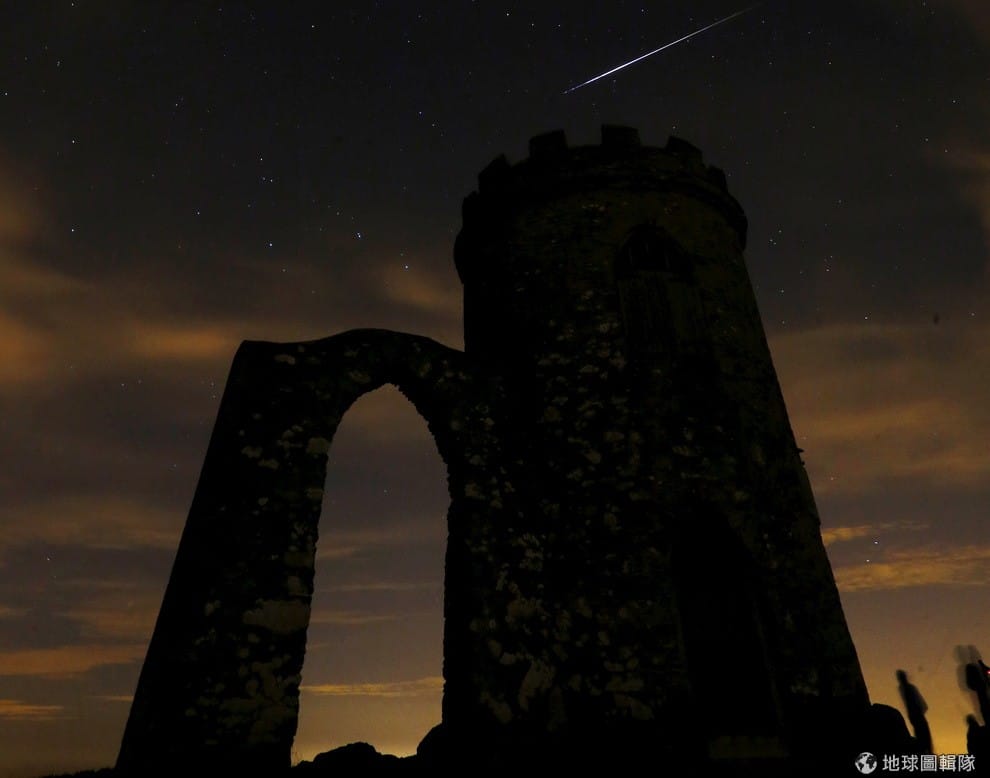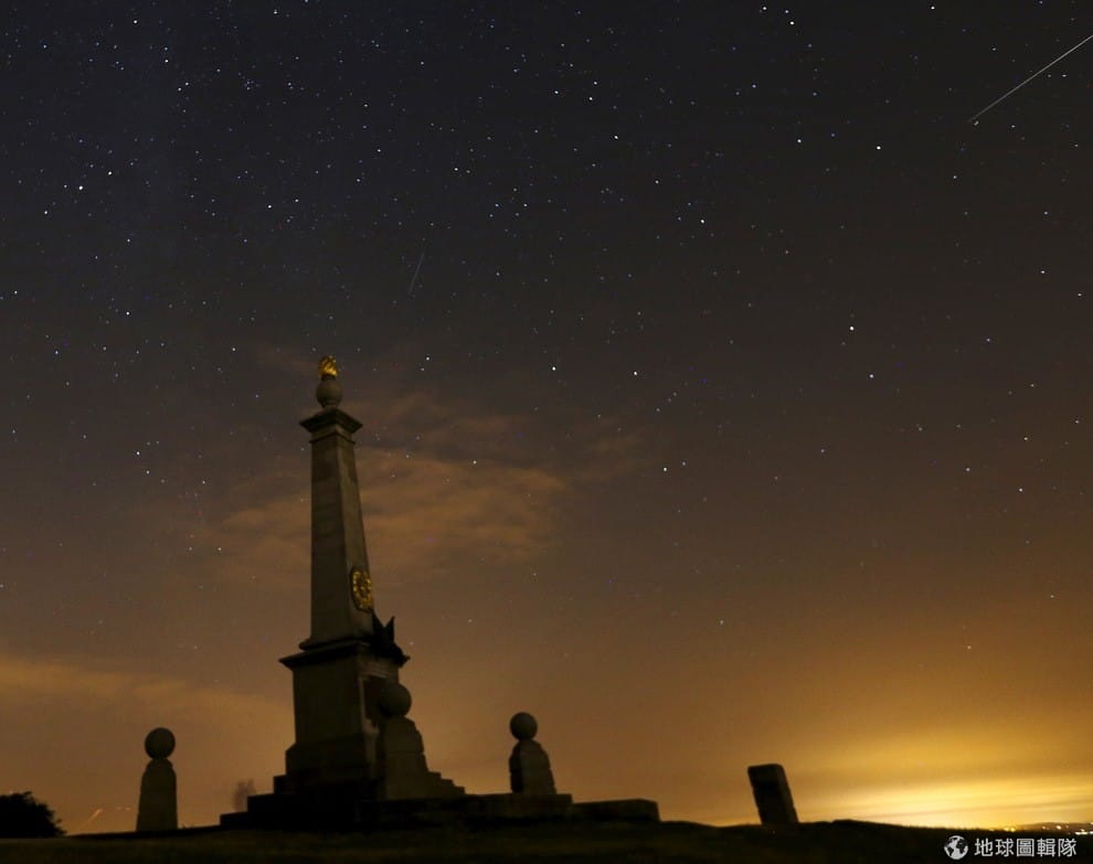 英國-南英格蘭的溫多弗(Wendover)當地,英仙座流星雨和當地的紀念碑形成一幅美景。