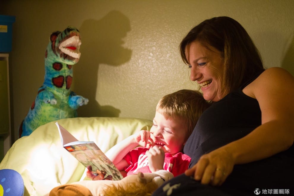 有的孩子難以入睡,即使聽了好幾個床邊故事還是精神飽滿。Photo credit: Darren