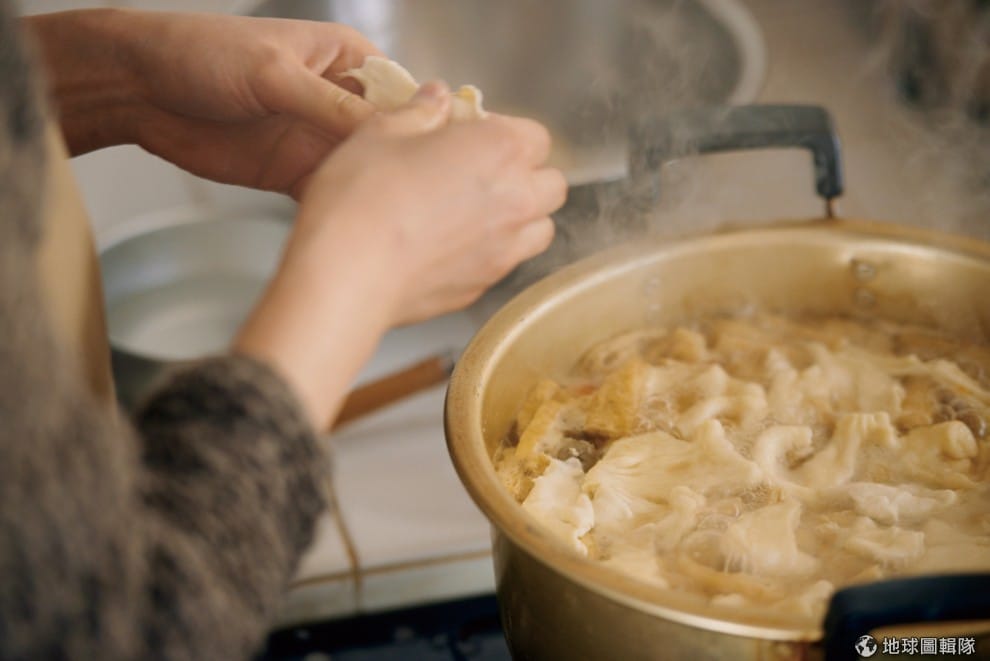 扯成片狀放入湯中