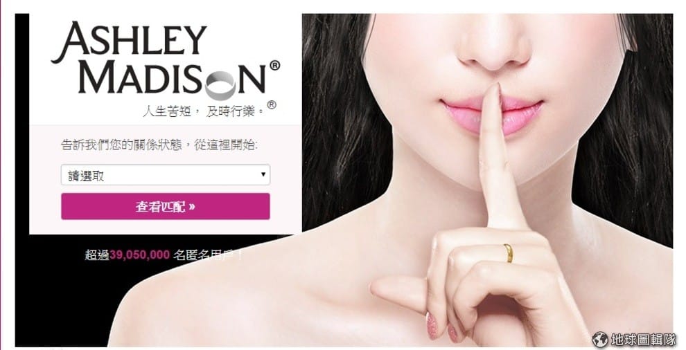 Ashley Madison 網站會因為登入地區不同有不同的首頁,圖為台灣版頁面。