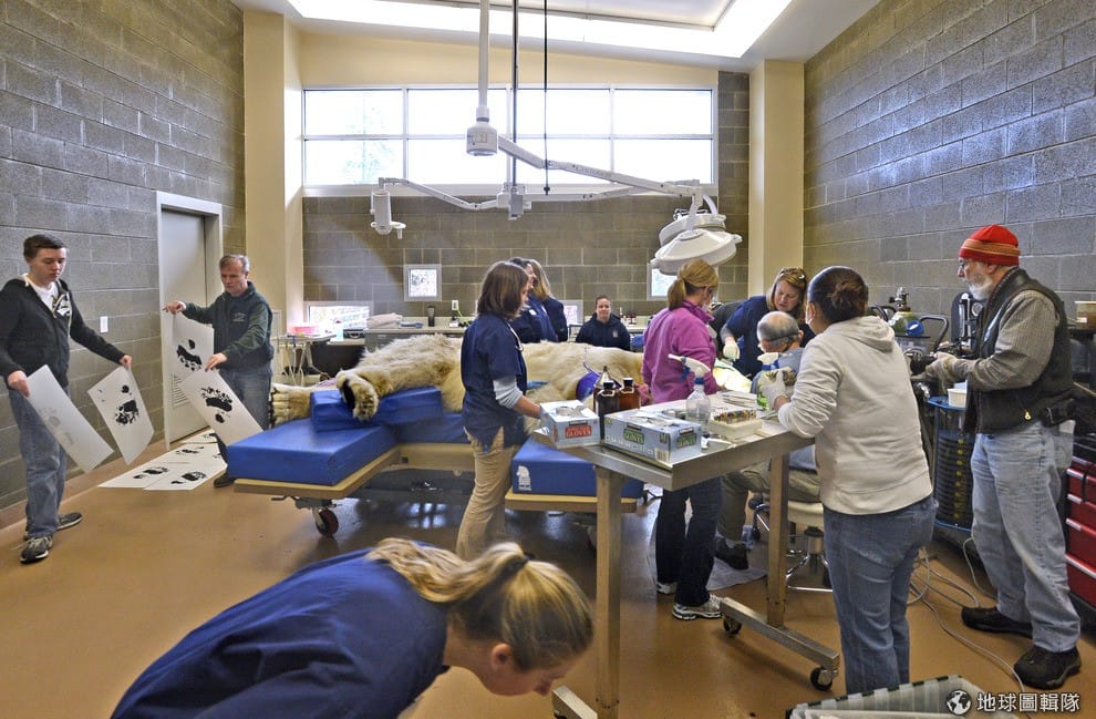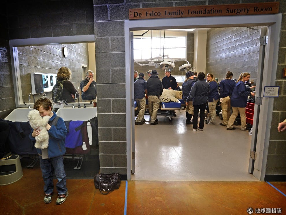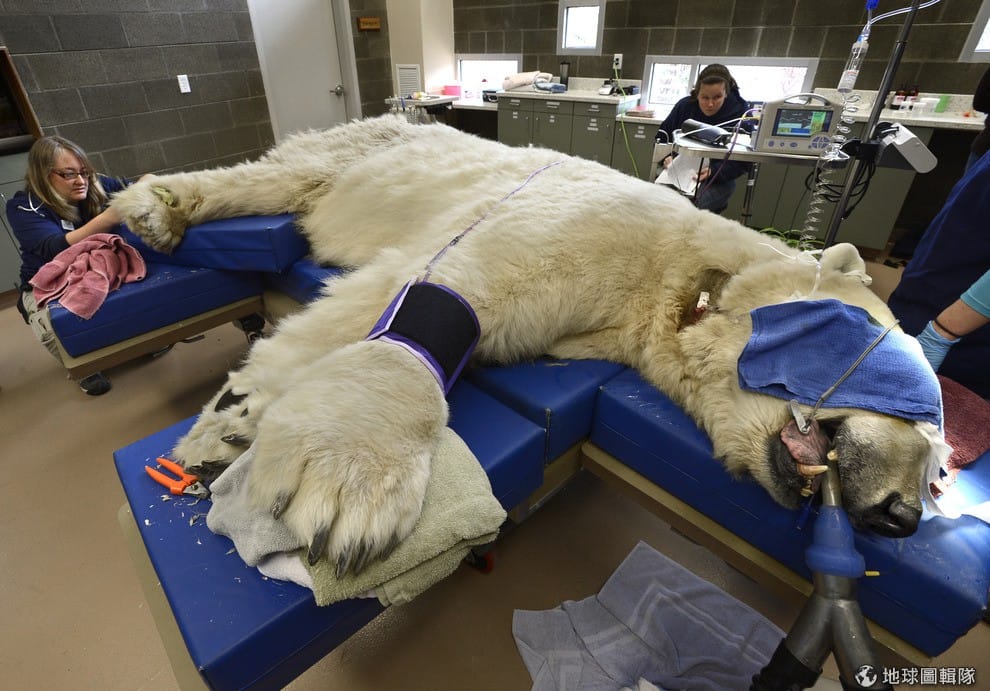 華盛頓的獸醫師正忙進忙出,要幫一隻剛從馬戲團拯救出的北極熊治療和健檢!Dean J. Koepfler/Tacoma News Tribune/MCT via Getty Images