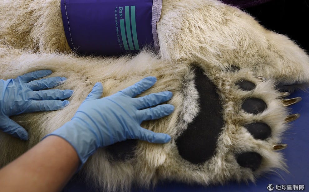 還有獸醫師幫北極熊「波里斯」做手掌拓印喔!Dean J. Koepfler/Tacoma News Tribune/MCT via Getty Images