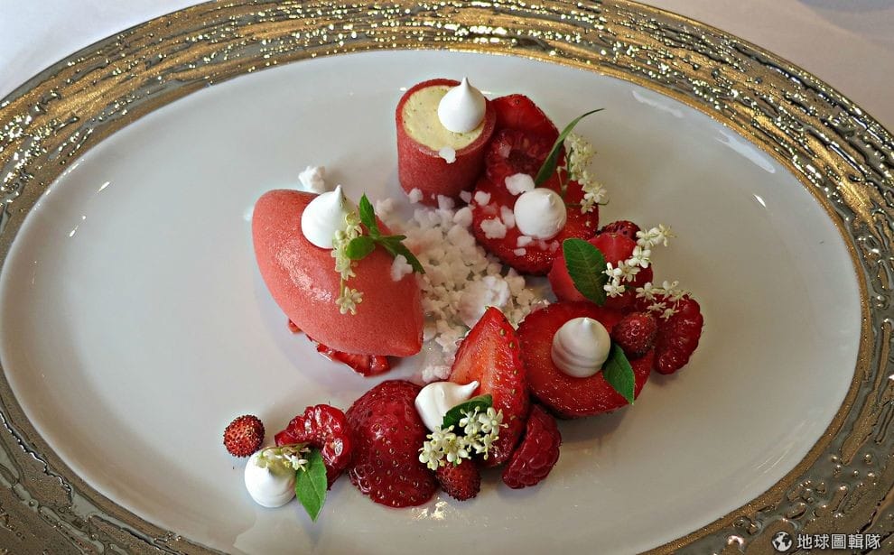 許多米其林星級餐廳仍保有供應義大利冰淇淋的傳統,圖為草莓雪酪。Photo credit: HYH