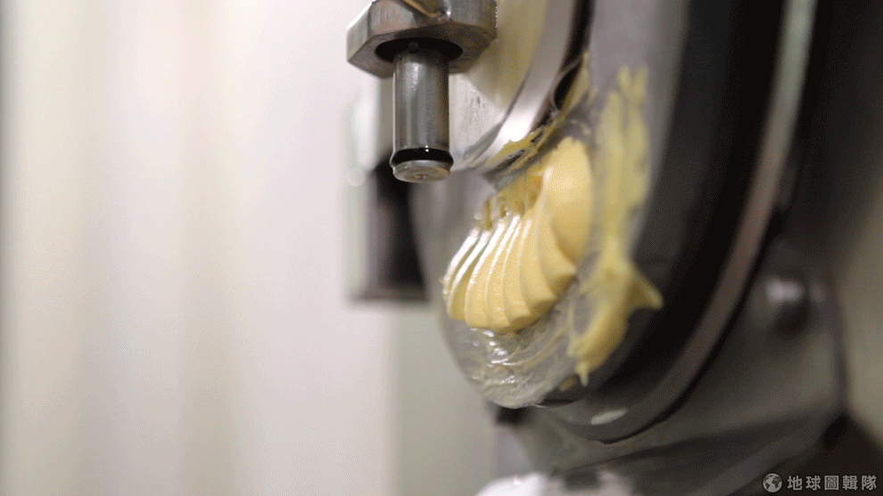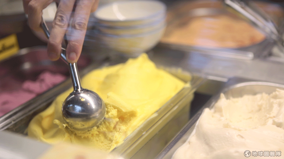 地球圖輯隊大約十分鐘後,好吃的芒果雪酪從冰淇淋機中緩緩出來,只見Nadia小心地刮下雪酪放在盒中,待會還要幫雪酪整整型,才能放在冰櫃中讓客人挑選。