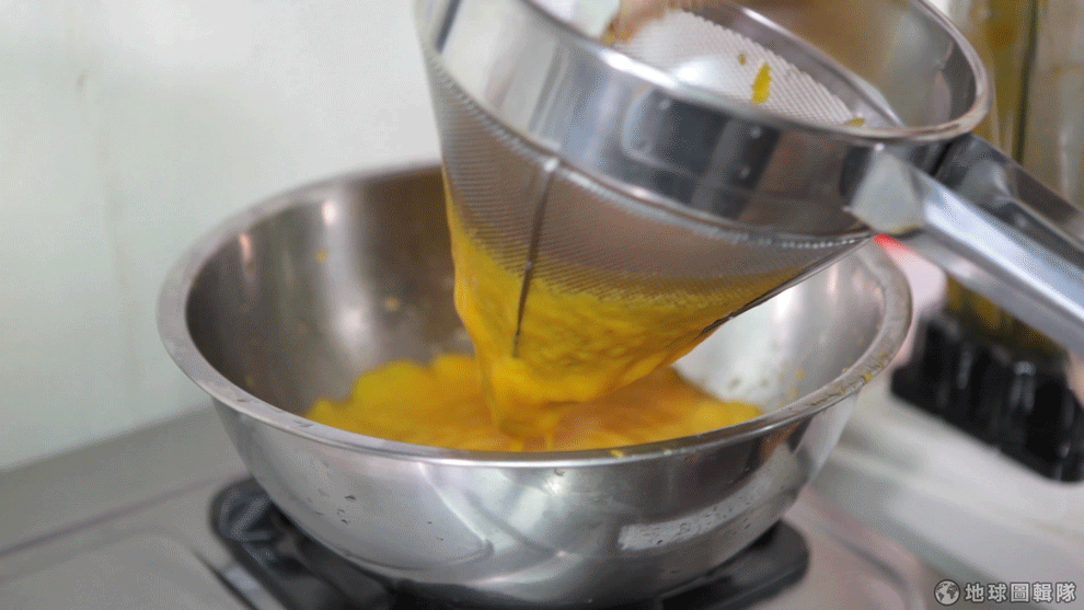 地球圖輯隊這一次,Nadia特別挑選台灣盛產的愛文還有金煌芒果要來做出令人口齒留香的芒果雪酪,而要製作美味健康的雪酪每一步都不可馬虎,一開始在處理水果就要用心,第一步就是將芒果打成泥後把容易卡牙縫的纖維瀝乾淨。