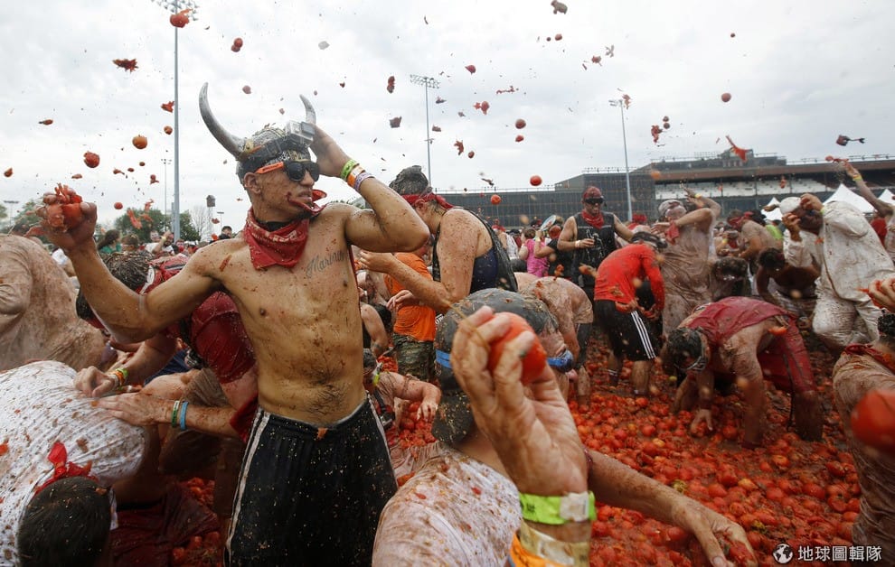 《德國之聲》報導指出,今年番茄節(西班牙語:La Tomatina)適逢七十周年,主辦單位也不手軟地準備了 170噸重的番茄讓大家砸個痛快,放眼望去,開打的活動街道上已經被番茄糊淹沒,豔紅一片。
