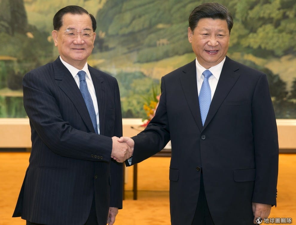這次中華民國前副總統連戰也有到場觀禮,圖為他和中國領導人習近平在典禮前合影。