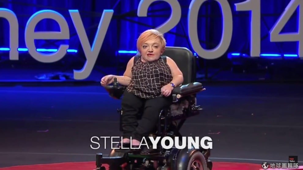 Stella Young,俗稱「玻璃娃娃」的成骨不全症患者,她提出這樣的疑問:「事實上,我們甚麼都沒做,我們憑甚麼得這些獎?」Photo souce: youtube