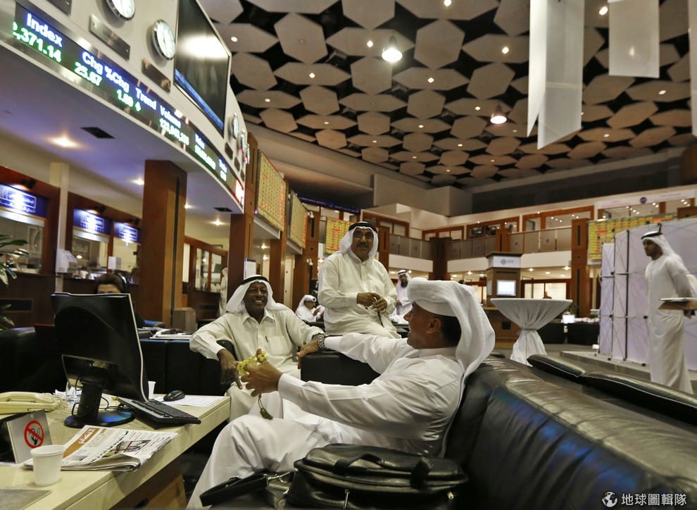 眾多的外國工人,帶起了海灣國家的經濟,讓海灣國更富裕。圖中的阿拉伯聯合大公國的民眾正在邊看股票邊聊天。