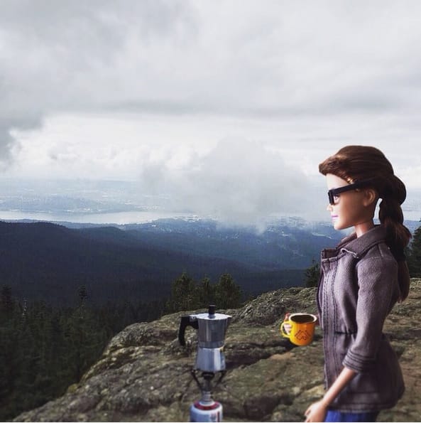 文青芭比眺望山景:「我『剛好』帶了泡咖啡的器具到山上,看來要跟大家一樣來沖杯咖啡喝喝了。」Photo source: socalitybarbie/Twitter