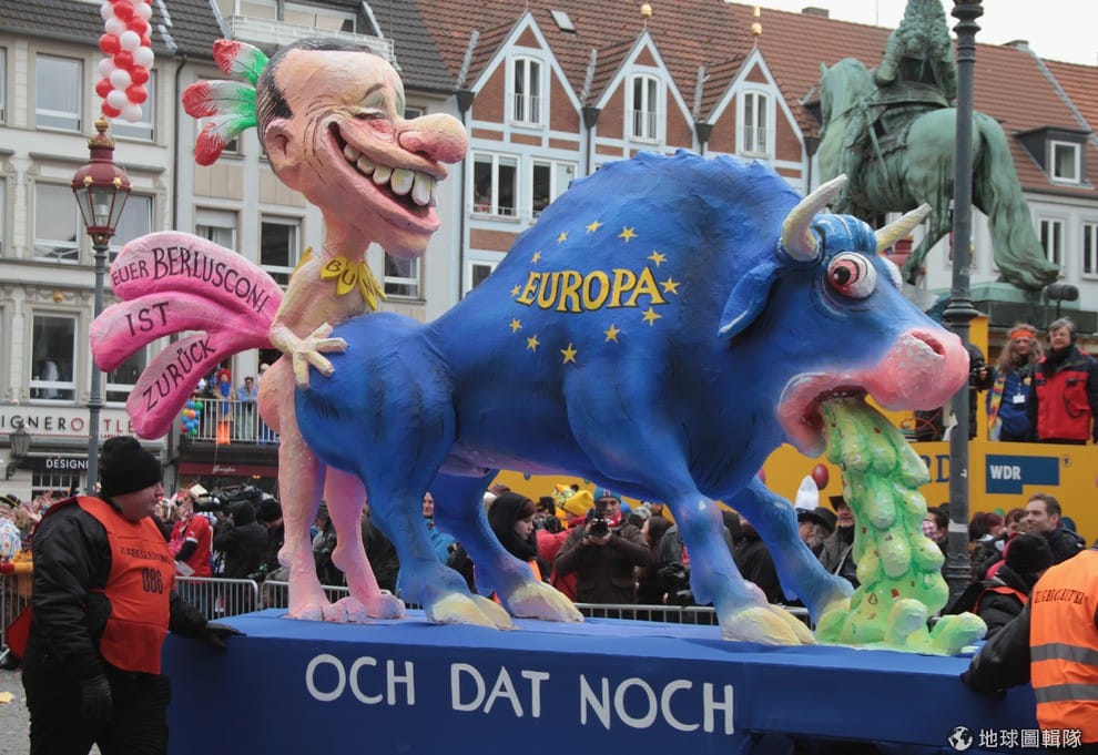 2013年,德國的「玫瑰星期一」(Rose Monday)嘉年華充滿政治色彩,當地的Spiegel Online11號報導就提到,為了表達對德國總理梅克爾的不滿,德國民眾讓總理化身成各種搞笑的角色;例如,諷刺梅克爾和深陷歐債危機的「歐豬四國」(葡萄牙、義大利、希臘、西班牙)的關係,居民把梅克爾化身成一隻餵養小豬的母豬;在杜賽杜夫當地,也出現梅克爾被希臘人畫上希特勒鬍子的肖像!此外,各種在德國發燒議論的話題,也可以在花車主題中看到,今年的花車遊行彷彿成了居民們一吐怨氣的管道!