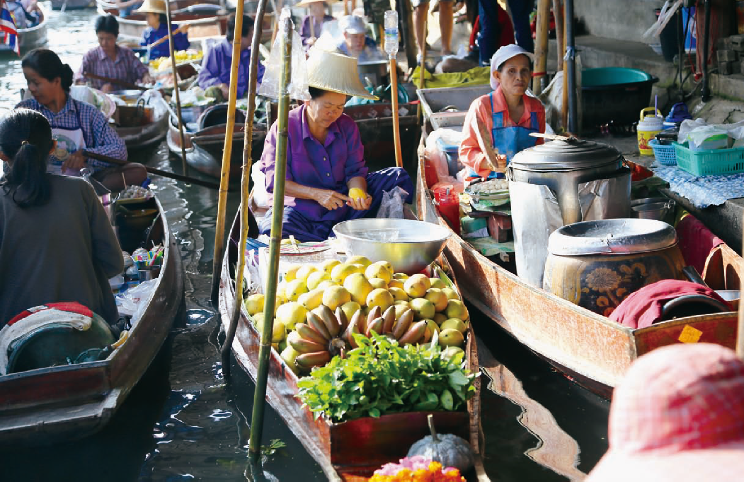 在這裡,當地人用船當作來往的工具,在屋檐間移動自如,只要向船夫揮揮手,他就會在你想要的攤子前停下來,讓你盡情的採購,或是飽餐一頓,從水果到烤肉串應有盡有,水上購物的過程十足讓人感到新奇有趣。