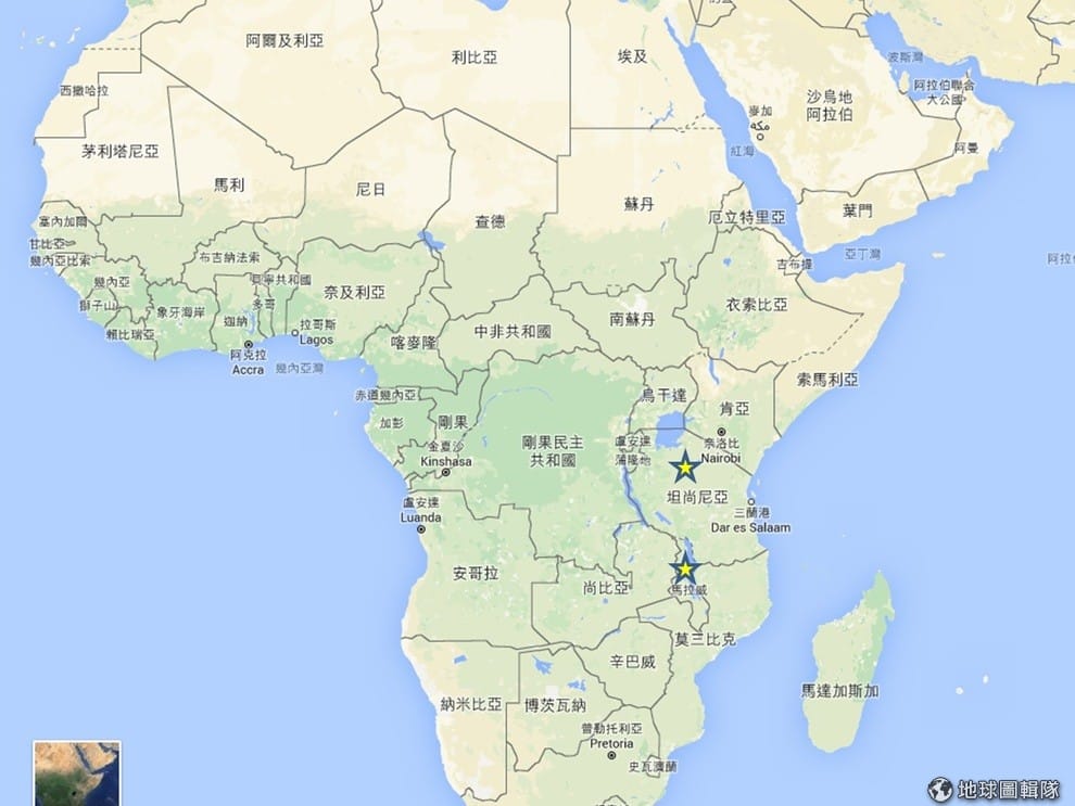 馬拉威和坦尚尼亞(上圖星號處)位在東非,兩個國家的盜獵問題都很嚴重,造成當地的大象在短時間內大量減少。