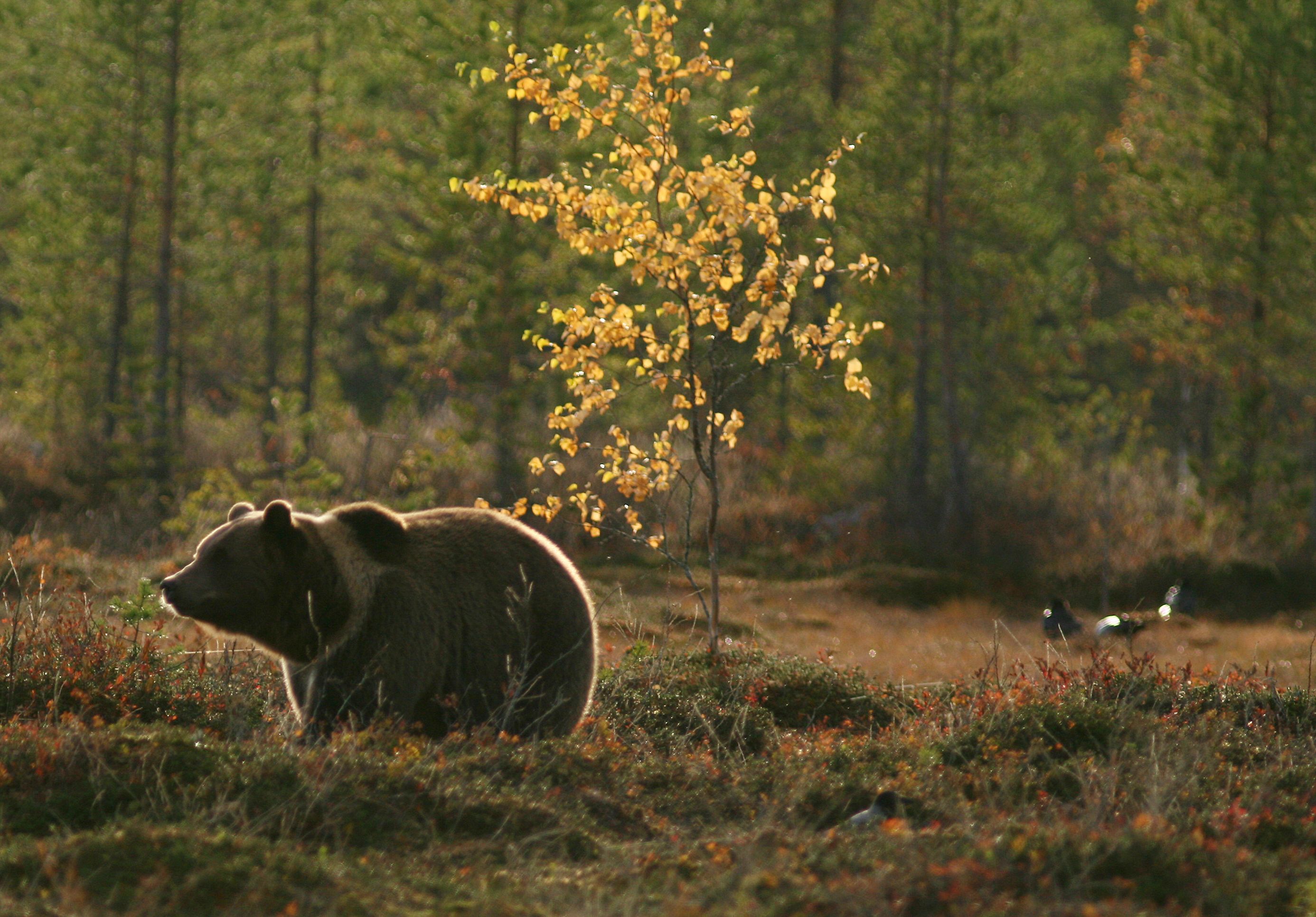 秋天到了,野生棕熊在林間漫步,再過不久牠就要開始冬眠,度過嚴寒的冬天。