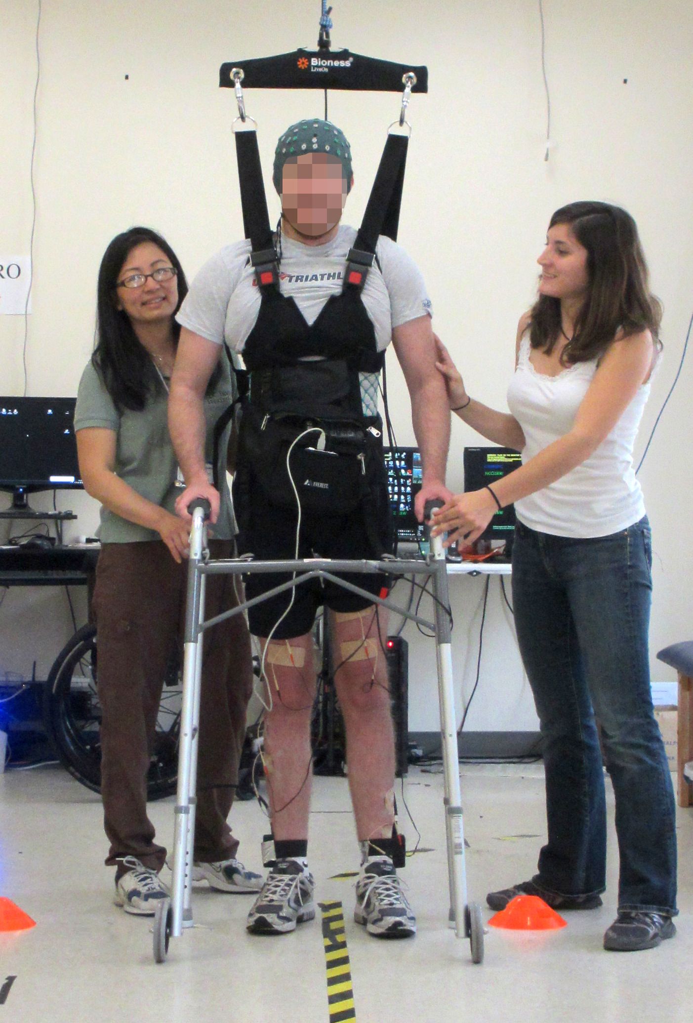 前後加總起來,費里茲為了學習怎麼傳達正確的腦訊號並走路就花了近五個月的時間,這期間他必須戴著腦電圖(electroencephalogram,EEG)不斷練習傳達對的大腦訊號,有時候,電腦會因為分辨不了走路、站立和站穩等訊號讓實驗中斷。