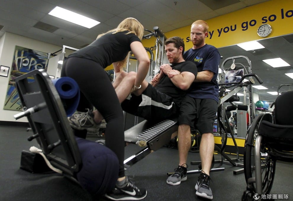 正在脊損傷訓練師協助下健身的費里茲。