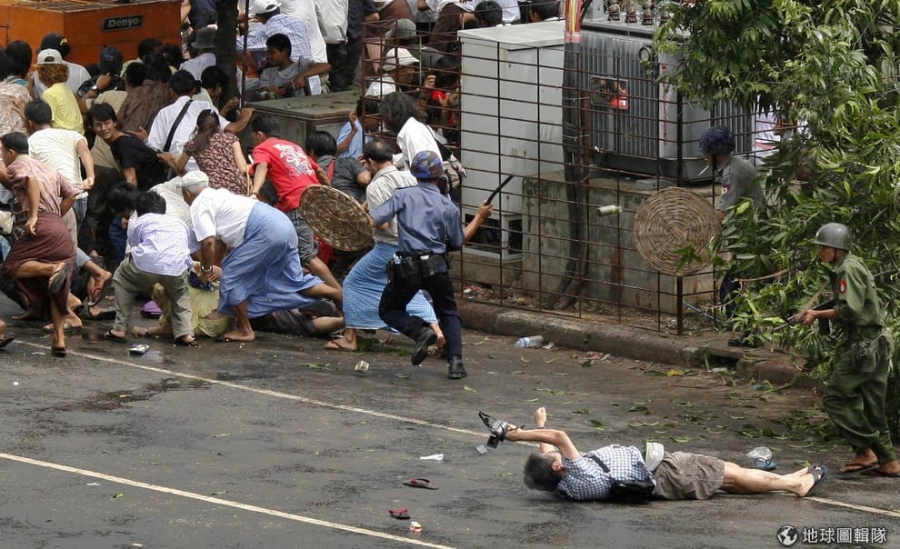 繼續閱讀根據「預警計畫」的統計,政局不穩的緬甸可能會是下一個發生大屠殺的國家。圖為 2007年緬甸反軍政府示威中,一名日籍記者受到軍人攻擊倒在地上,不幸身亡。