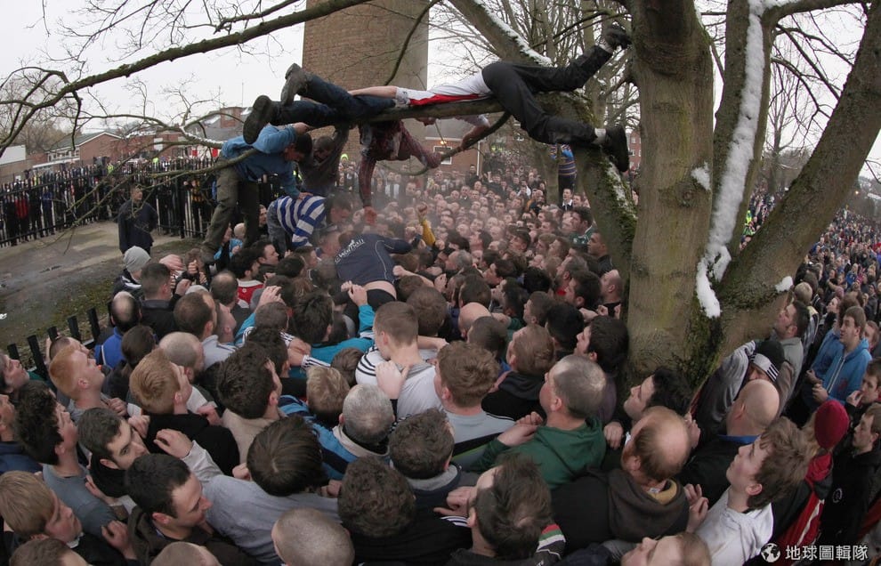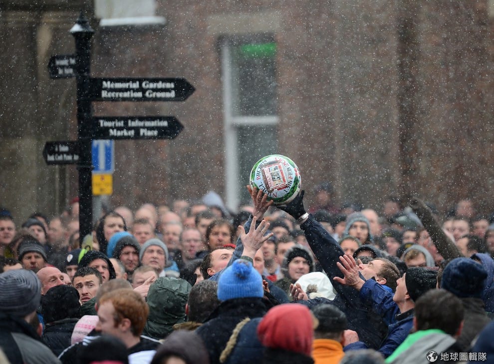 每年齋戒月前一天和當天,英國的「阿什伯恩」市(Ashbourne)就會舉辦當地特有的「皇家聖灰節足球賽」(The Royal Shrovetide Football Match);這項球賽可說是歷史淵遠,競賽源頭最早可以追溯回12世紀,然而,舉辦比賽的確切的原因已經不可考,因為相關紀錄在1890年時因大火付之一炬。比賽的來由,目前最受歡迎的說法是,源自早期斷頭台行刑後,死刑犯的人頭會被拋向等在台下的群眾,但這項說法沒有確實的資料佐證。Michael Regan/Getty Images