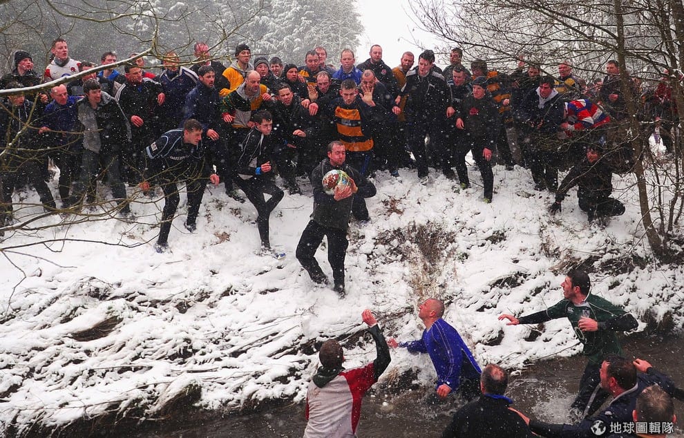 隊伍的區分,簡單來看就是用「居住地」來分,若你住在當地的漢摩爾河北邊,那你就是「上城隊」,若住在河岸南邊,就是「下城隊」;兩天的競賽中,每天下午2點到晚上10點就是賽程時間,若是有任一隊在5點前先馳得點的話,則球局又會重啟。Michael Regan/Getty Images
