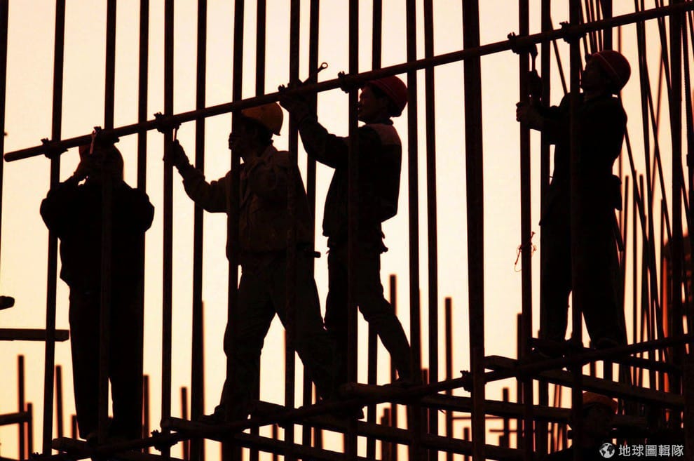 一群移工正在工地裡工作,他們有的人從貧窮落後的地方移民到富裕的國家,希望找到一份能填飽肚子的工作。