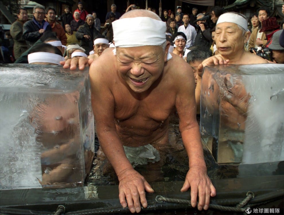 未來所有人口高齡化的國家都得面對缺少勞動人口的挑戰。圖為一名在日本東京鐵砲洲稻荷神社參加「寒中禊」祛寒祈福儀式的老人。