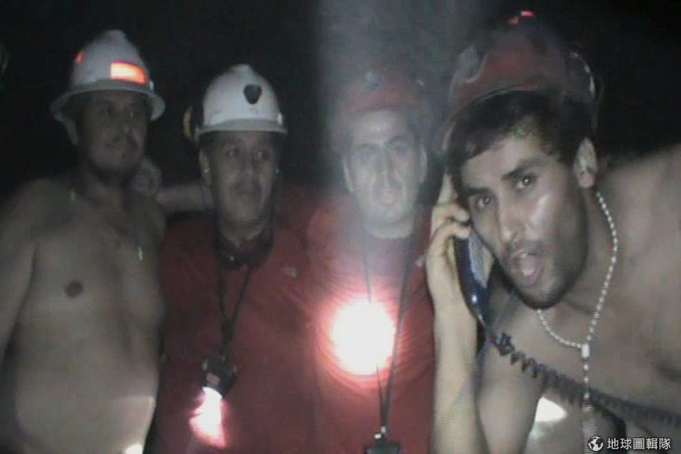 圖為當時礦工受困的情況,礦工們利用攝影設備,將地下的一切傳到地面上讓大家了解。