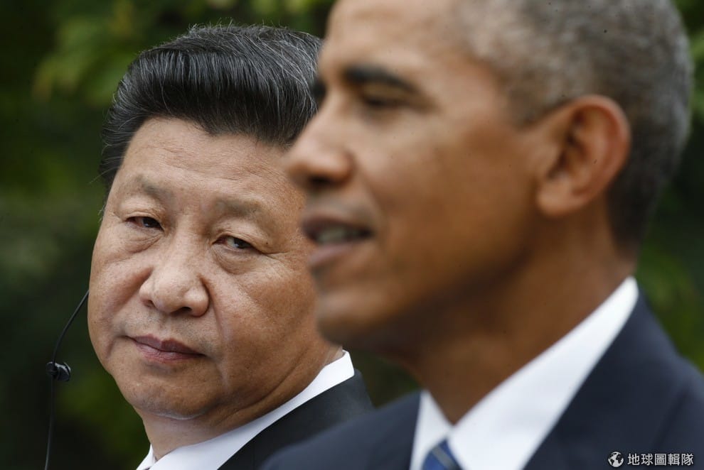 圖為上個月中國領導人習近平(圖左)訪美時,和美國總統歐巴馬(圖右)在白宮召開記者會。目前中美在網路犯罪還有南海問題上仍有爭議,中國對人權的漠視也讓中美關係緊張。