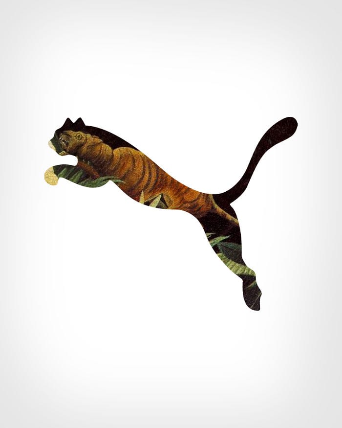 網友Eisen Bernard Bernardo法國後印象派畫家盧梭(Henri Rousseau)的名畫《被老虎襲擊》(Scout Attacked by a Tiger)巧妙地將PUMA LOGO代換成一隻活力四射的老虎。
