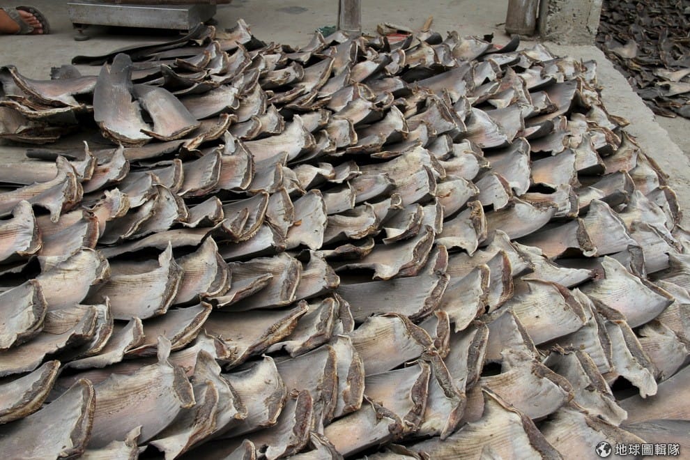 魚翅是造成鯊魚數量大減的原因。照片中是漁夫抓到鯊魚後,從鯊魚身上切下來的魚翅。
