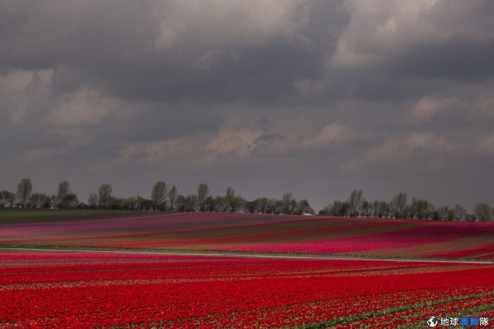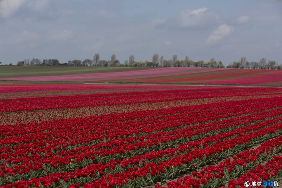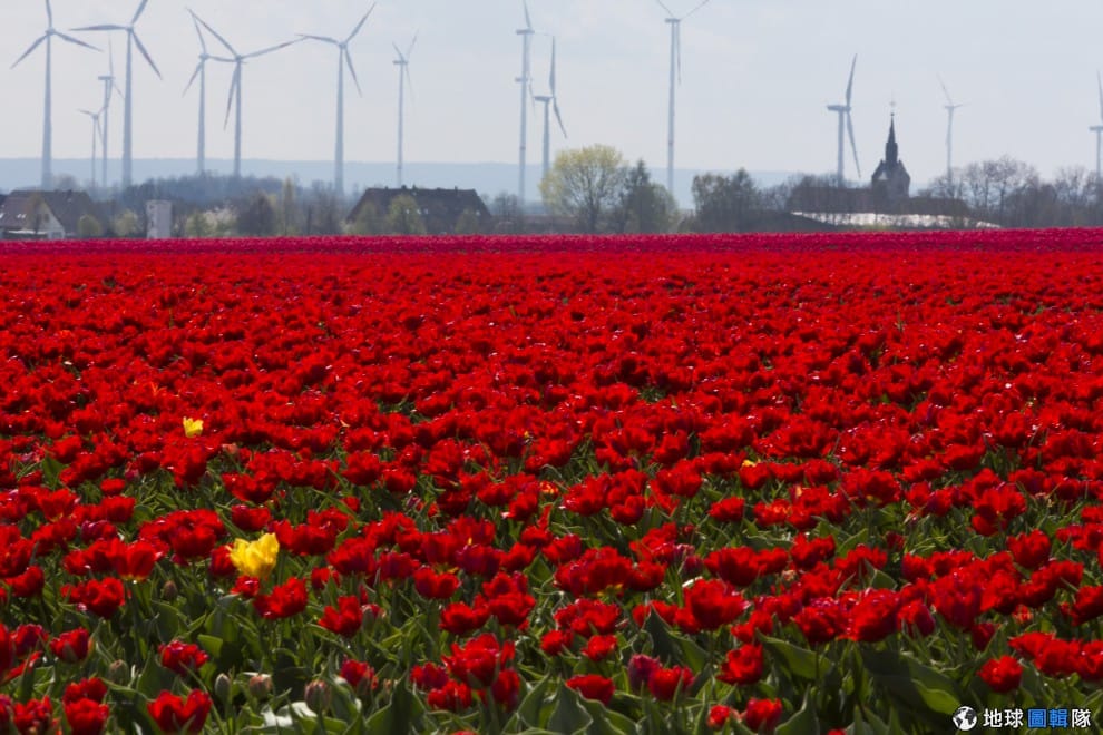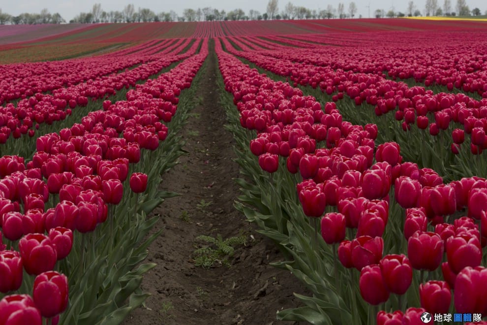 整片綻放的紅色鬱金香花彷彿是整片紅地毯。圖片來源:Carsten Koall/Getty Images