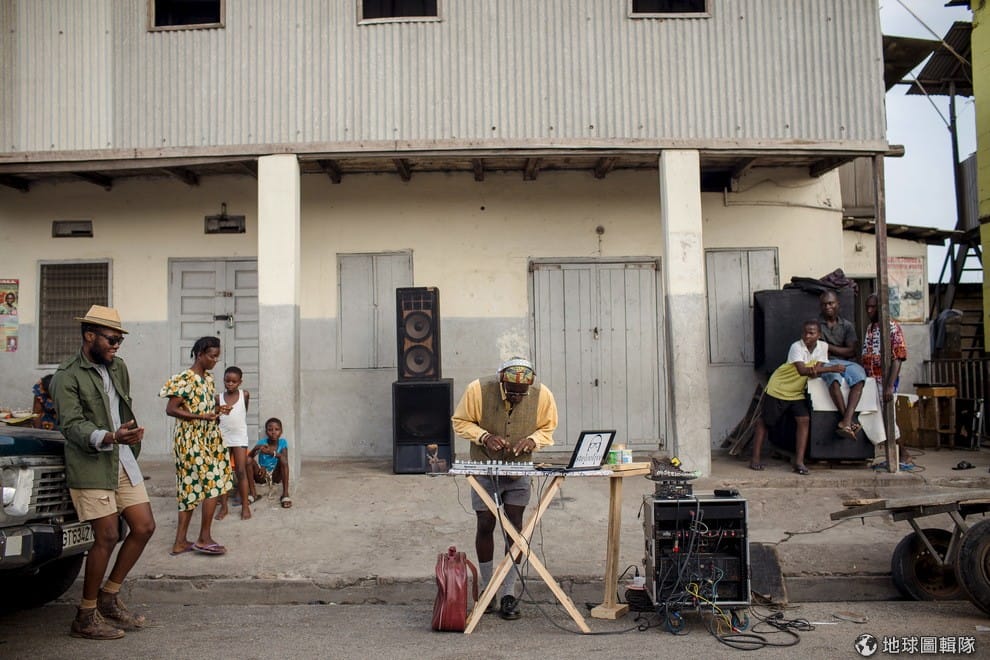 基斯常常像這樣,跟朋友帶著器材在戶外拍照,他們一群人正透過社群平台與更多的網友溝通。由於基斯的裝扮和音樂吸引越來越多人關注,他也成了迦納當地的名人,不少人還會特地跑到他的音樂攤打招呼。
