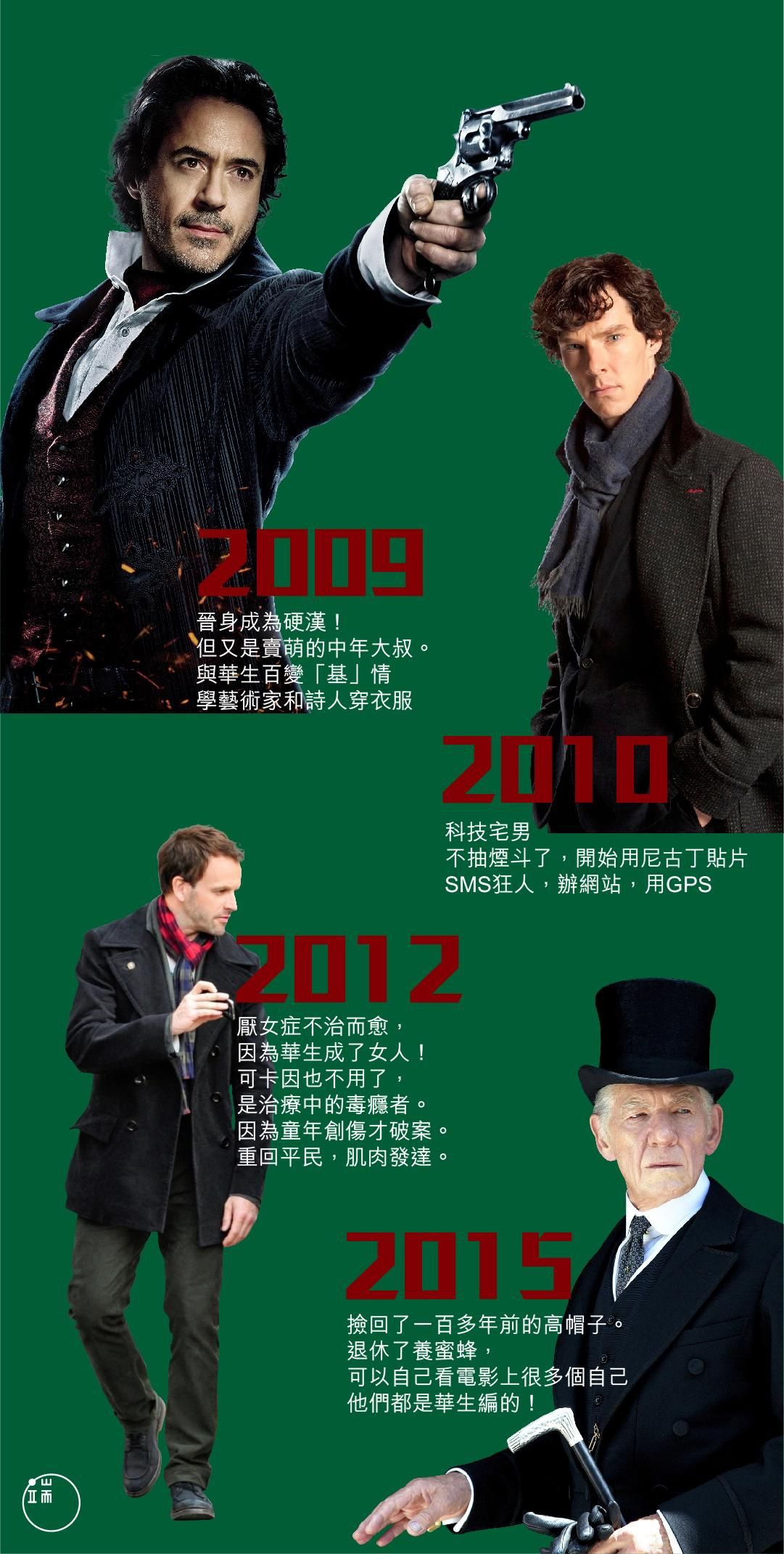 你知道嗎? 1887 到 2015 ,書和電影裏出現過 22 個福爾摩斯,我們為你找來8個最典型,最有型的,最後一個是你在現在的大銀幕《福爾摩斯的最後奇案》上會看到的。