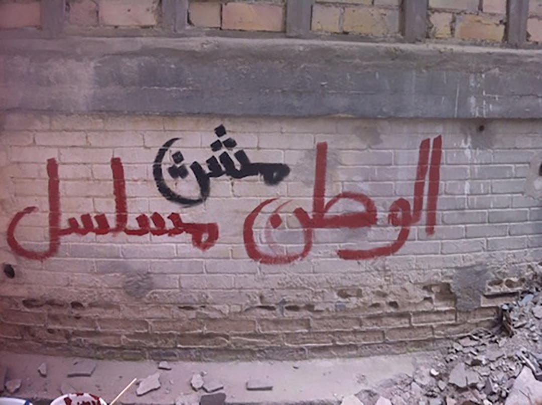 何貝·阿明和朋友們在那面「敘利亞難民營」的牆上用阿拉伯語噴出了這些宣言:「《國土安全》就是個笑話,而且一點也不好笑。」,「《國土安全》種族歧視!」、「黑人的命也是命」、「根本沒有『國土安全』這回事兒」、「這個電視劇不代表藝術家的觀點」。