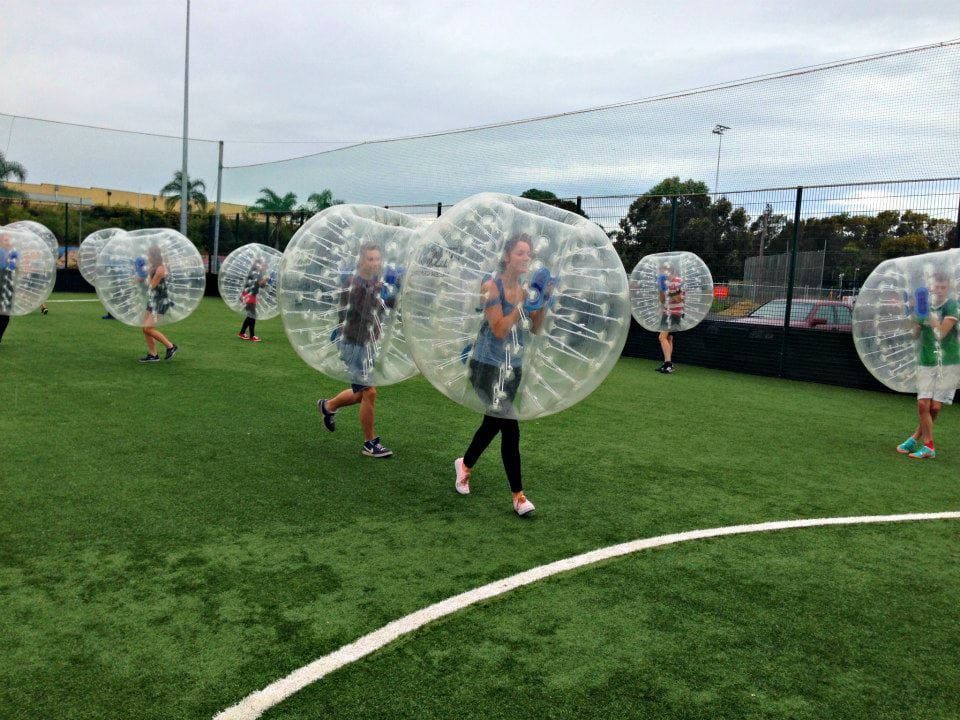EF雪梨分校的學生們正在體驗泡泡足球(Bubble Soccer)。