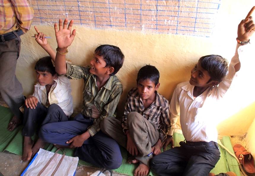 專門到印度鄉下宣導反童婚的鄭欣娓說,照片中舉起手的小男生都是已經有老婆的人。