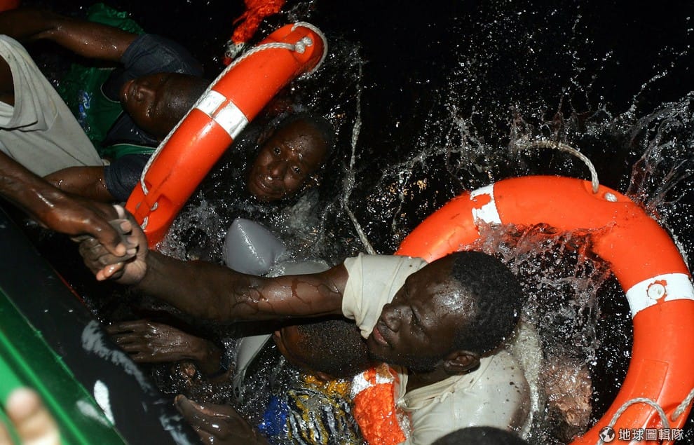 攝影師門迪那(Juan Medina)今年因為這一張照片獲得世界新聞攝影獎。照片中落海的非洲難民一臉驚恐,從中可以感受到他們為了到歐洲大陸找新生活的迫切感。