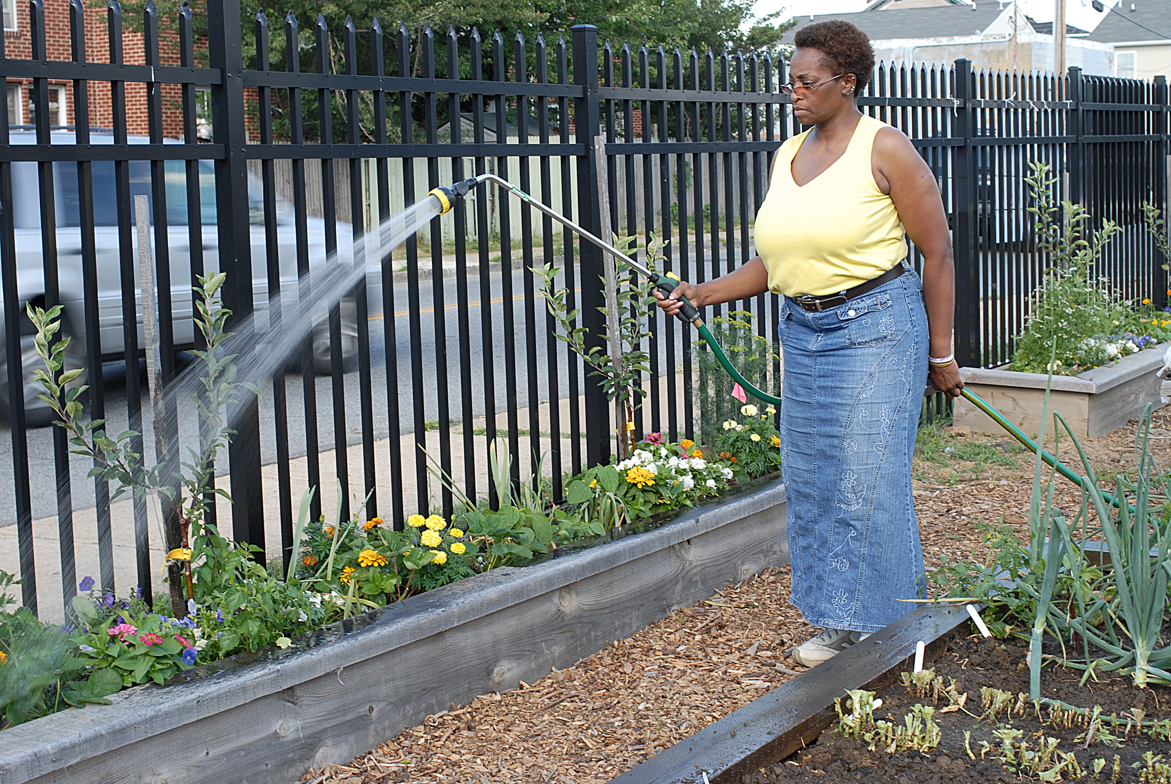 一名女性在花園裡澆花。南非因為乾旱來臨,當地的部分城市已經禁止居民澆花。