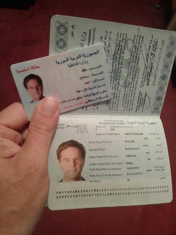 有荷蘭記者實驗敘利亞護照多容易買到,他用荷蘭總理的名字買到了敘利亞身分文件。