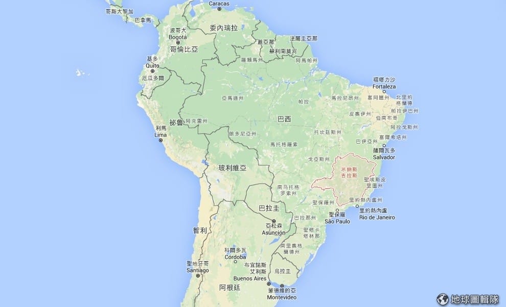 圖中紅色地區即遭逢巴西「史上最嚴重環境浩劫」的米納斯吉拉斯州,該地的兩座礦場大壩潰堤,造成鄰近區域全受汙染。