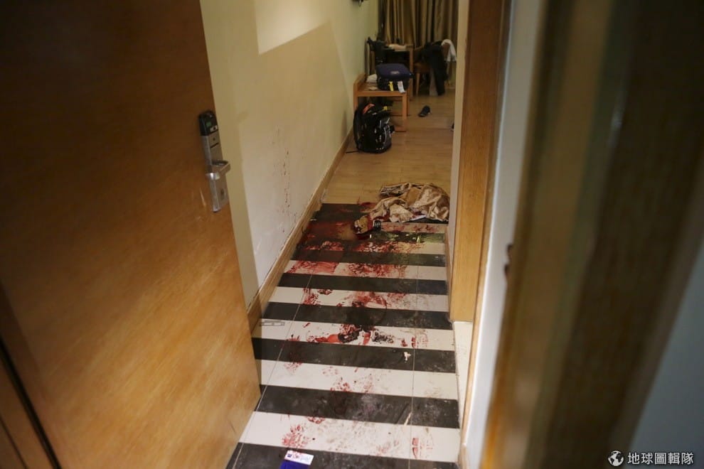 遭遇馬利恐攻的麗笙酒店客房內亂成一團,地板上血跡斑斑。
