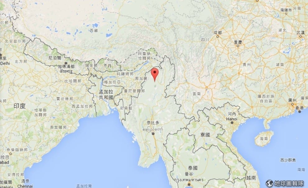 圖中紅色地標處是此次發生土石坍塌意外的緬甸帕敢礦區,該地靠近中國,出產的緬甸玉很多都銷往中國。
