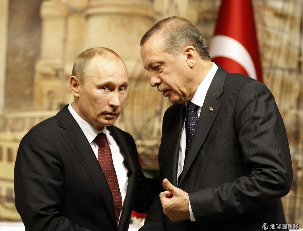 圖為 2012年普亭(左)出訪土耳其時,和當時擔任土耳其總理的埃爾多安(右)會面的情形。