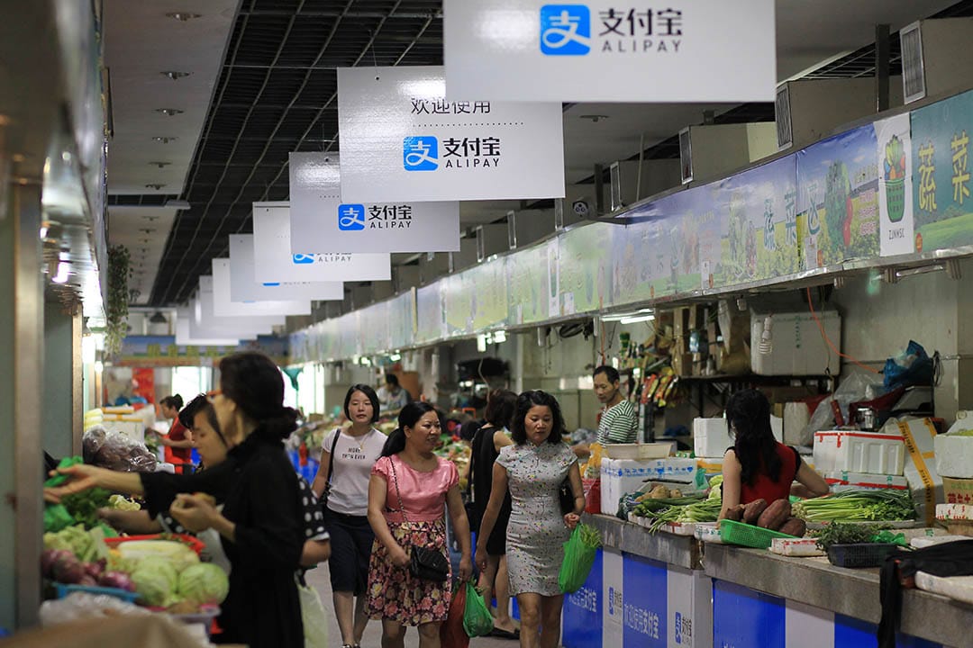 中國溫州的市場掛有支付寶的宣傳牌。攝:Kim Kyung-Hoon/REUTERS/端傳媒提供。