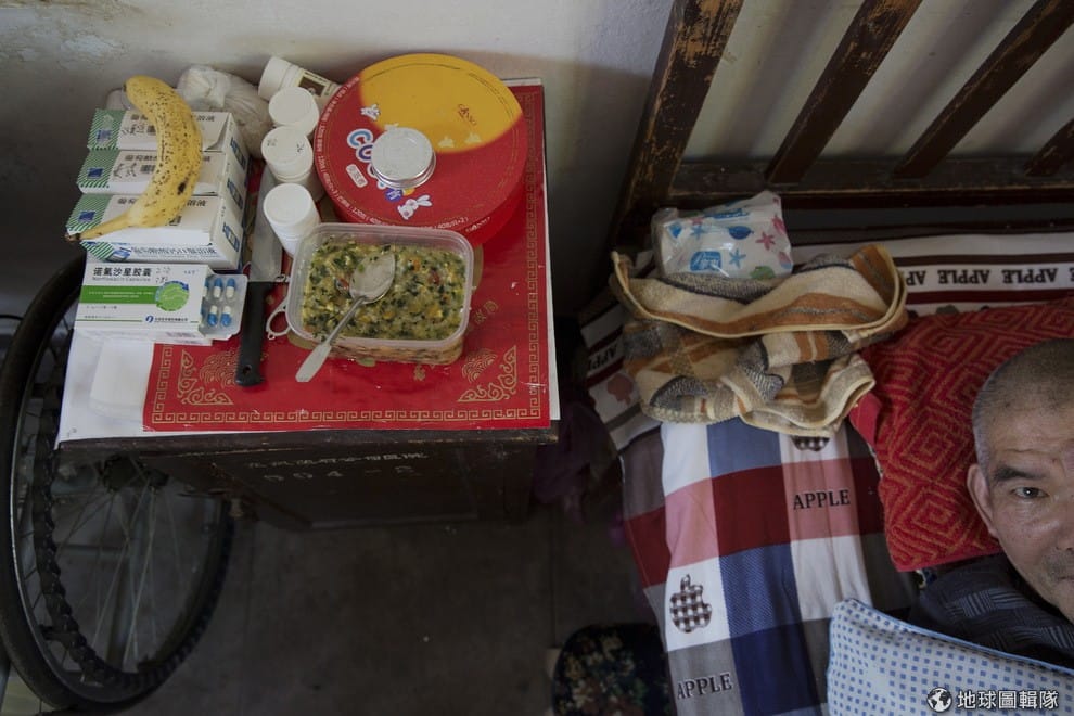 68歲的劉先生看著記者,他在 2014年中風後,跟著太太一起移居到楊家醫院這裡來,原因是這裡住院費用便宜,只要靠劉先生的保費負擔就可以過得去,而劉太太每日也只需要支出人民幣 6元。