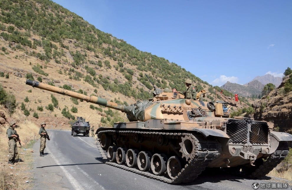 圖為土耳其準備派駐伊拉克北部邊界的坦克車。伊拉克國防部長歐貝迪說,土耳其的駐軍規模太大,他們希望土耳其趕快撤軍。