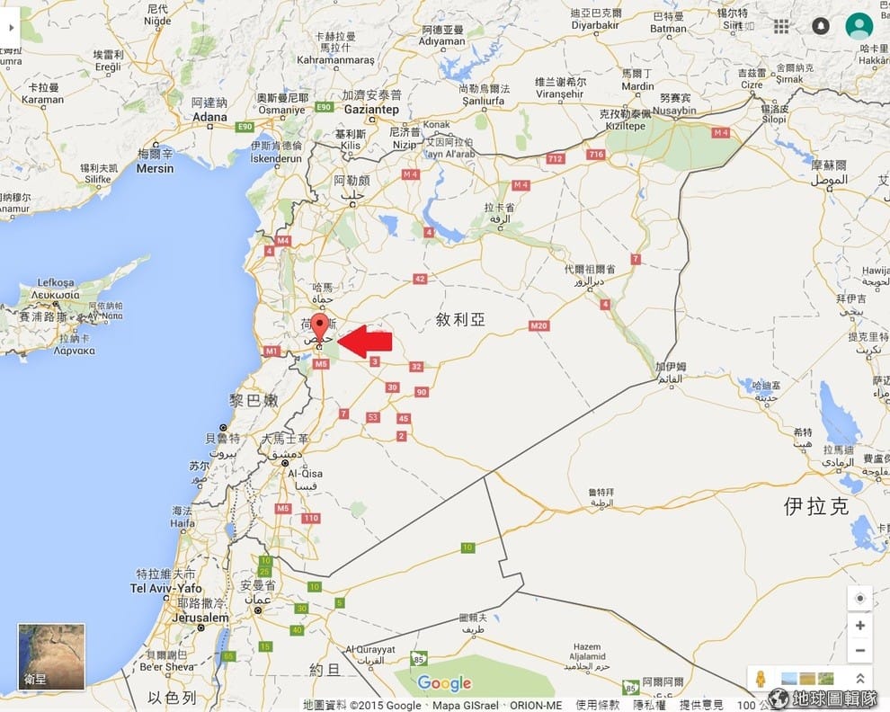 敘利亞國土以及霍姆斯城的相對位置一覽。