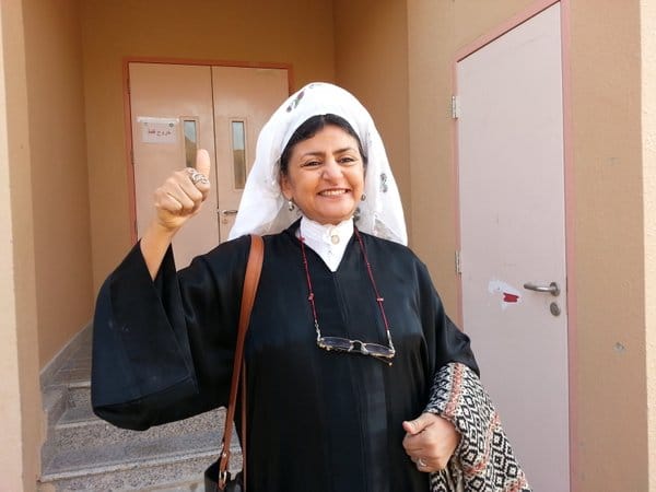 多年來致力讓沙國男女平等的女權人士法希,投完票後比出大大的讚。
