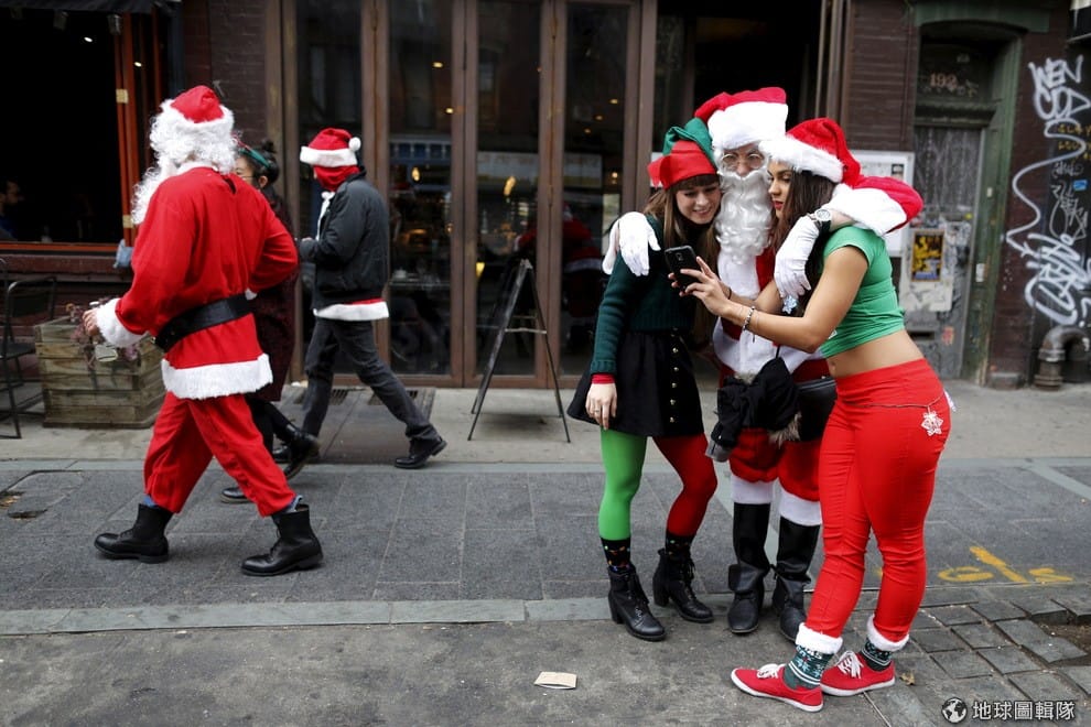 上週六(12)的紐約市區或是地鐵站內,可見許多換上大紅外衣與紅帽子的民眾湧現,因為年度「聖誕老人大會」(SantaCon)再度到來,不管是喜歡聖誕老人、想喚醒大眾捐款做慈善或是討厭消費文化的人們紛紛齊聚,眾人趁機聚會也一同吆喝迎接聖誕。