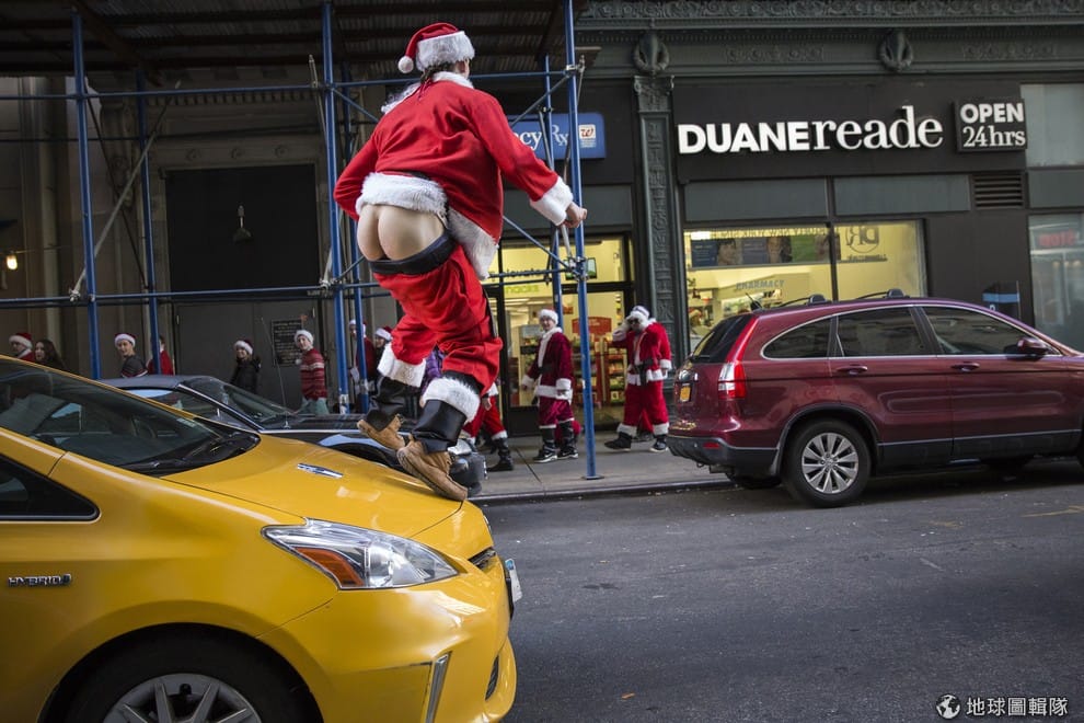 路透社每年聖誕老人大會來臨時,搭上地鐵就會撞見許多扮相讓人發噱的參加者。