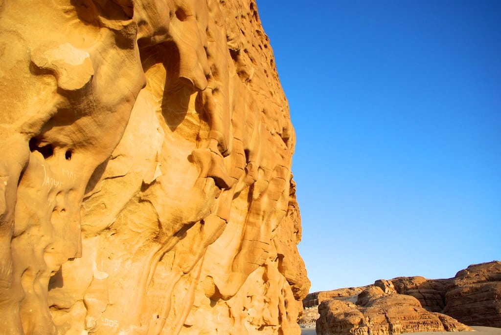 網友Jonah Bettio侵蝕成蜂巢狀的岩石佇立在晴空下。